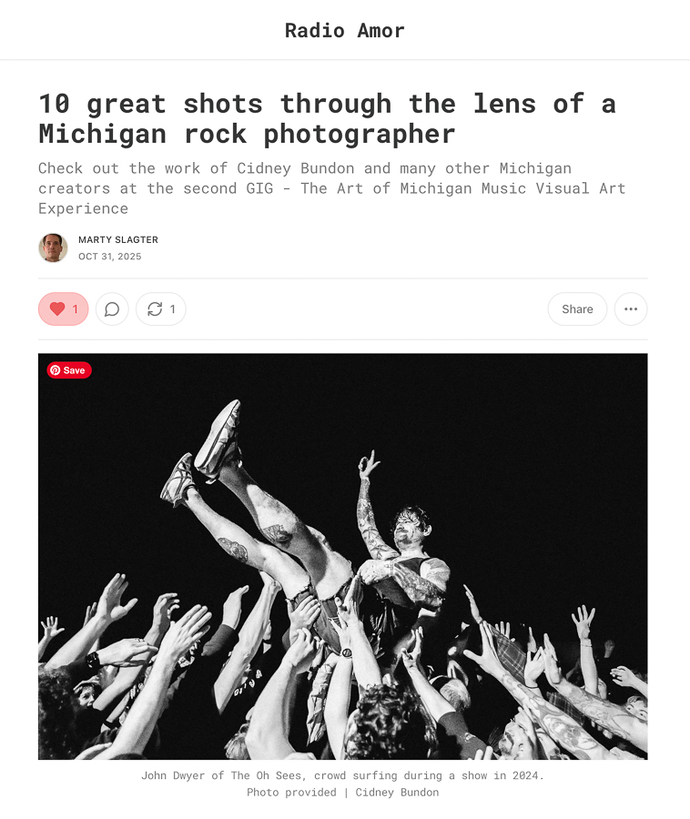 While rock and roll photography has never put much money in Cidney Bundon’s pocket, there are certain shots she’s captured over the years that continue to sustain her appetite for going back into the sweaty mayhem of the pit.