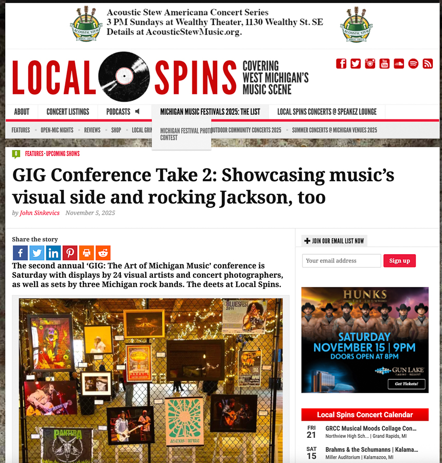 Organizer Chuck Marshall describes his upcoming event, GIG – The Art of Michigan Music, as “a showcase for the visual artists in Michigan music,” including poster artists, concert photographers, album cover artists, and more.